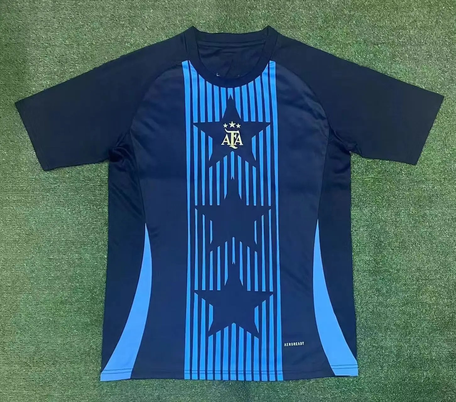 Adidas Argentina Training T-Shirt – Navy Blue Stripes with Star Pattern, Breathable