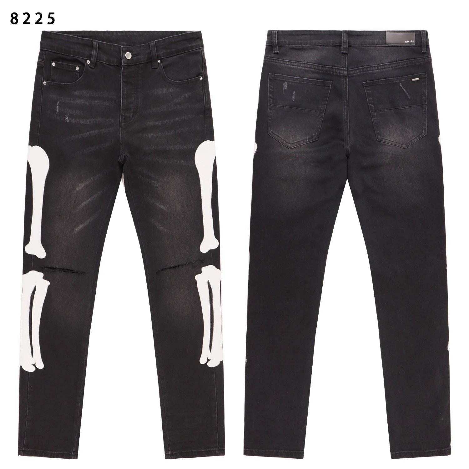 AMIRI Bone Pattern Graffiti Black Denim Pants: Street art-inspired bone pattern graffiti prints clash with classic black washed denim, delivering an avant-garde, rebellious vibe. The slim tapered silhouette flatters the legs, while the slightly stretchy fabric balances comfort and structure. Pair effortlessly with oversized hoodies, leather jackets, or retro sneakers to switch between daytime streetwear and high-street looks. This niche design for Fall/Winter 2024 avoids fashion clashes while showcasing individuality—an essential piece for creating eye-catching outfits.