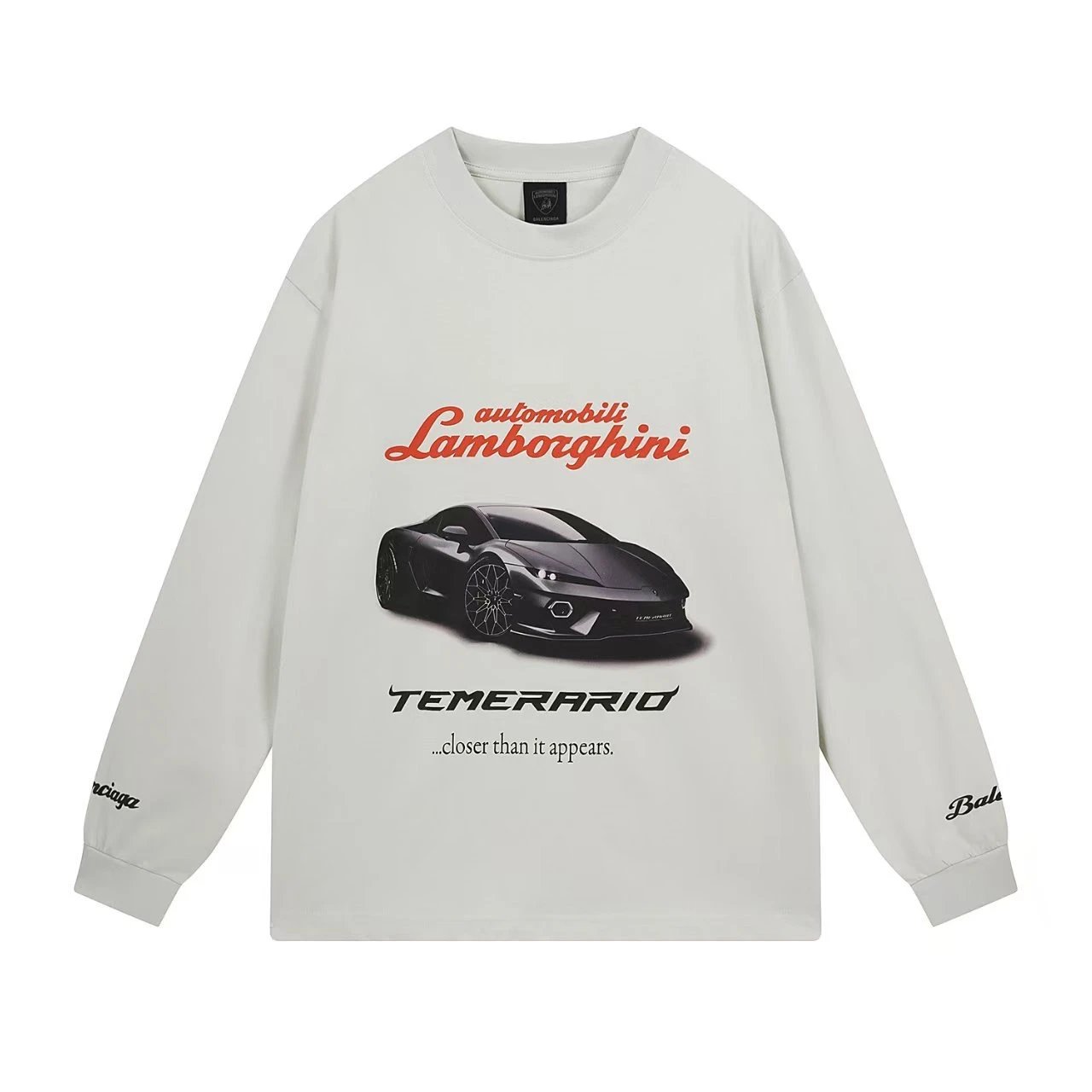 Balenciga __amborghini Sports car logo direct-print long-sleeved shirt