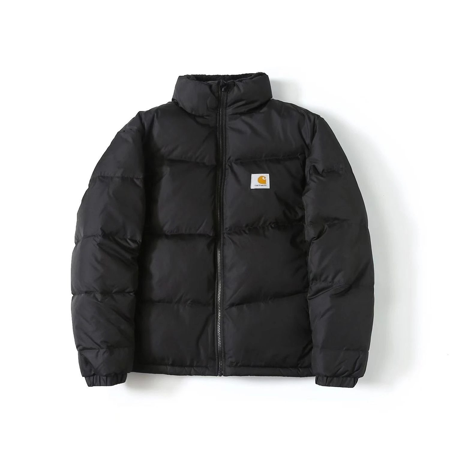 Carhartt Workwear-Inspired Down Jacket in Black distills classic workwear aesthetics. Its rugged silhouette meets plush down filling, balancing warmth with street-ready edge. The sharp black hue adapts to diverse settings. Layering a hoodie beneath the jacket creates rich dimension, while pairing it with workwear pants or tapered trousers exudes cool, edgy attitude. A must-have for the 2024 fall/winter workwear revival, this piece combines practical pockets with windproof design. It’s the go-to choice for trendsetters commuting daily or enjoying outdoor leisure, embodying a style philosophy that blends functionality with retro charm.