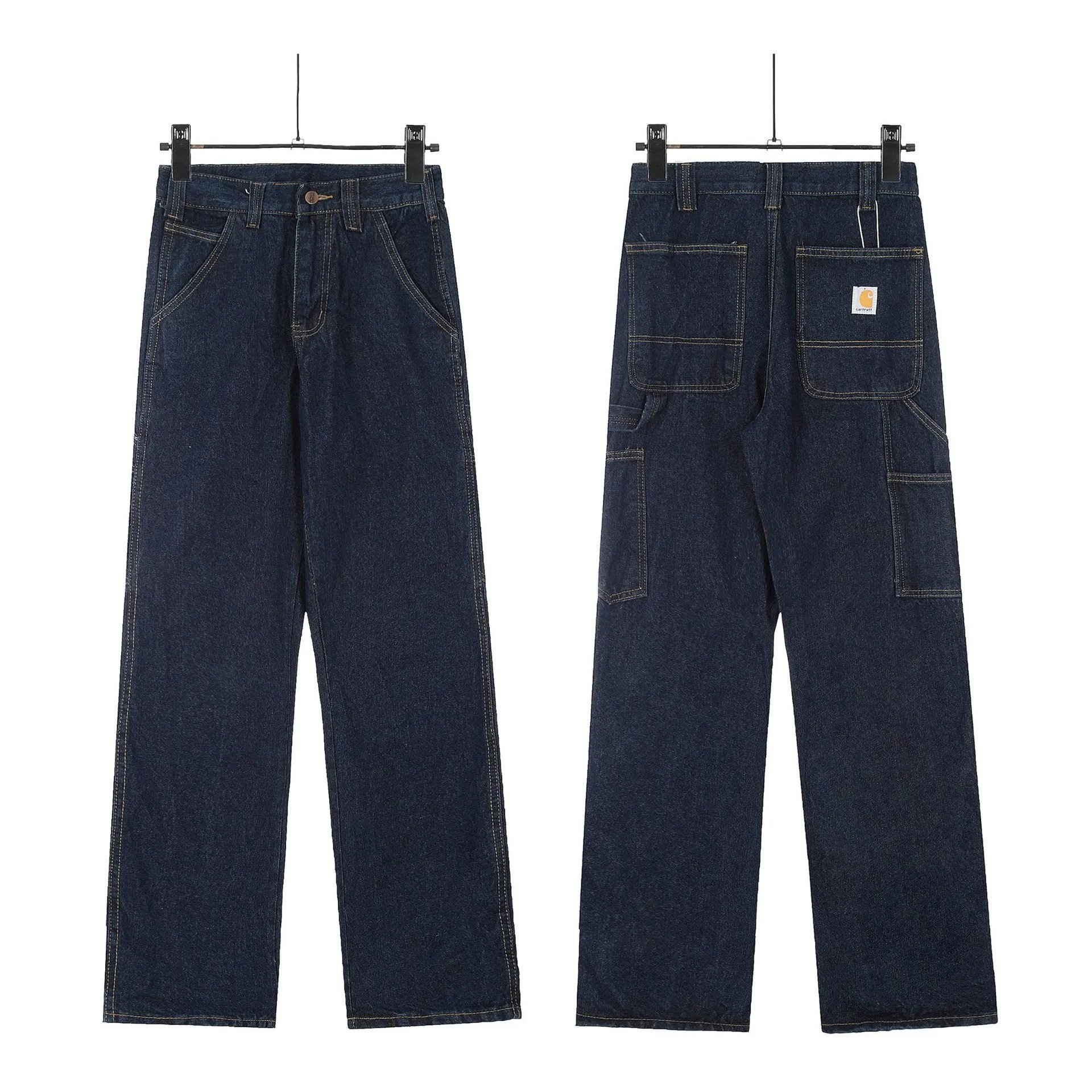 Carhartt Deep Blue Workwear Jeans blend classic workwear style with modern streetwear trends. Indigo denim undergoes a vintage fermentation wash process, revealing natural distressed textures. The straight-leg, slightly tapered silhouette flatters the leg shape, while 3D knee panels enhance mobility. Multiple pockets combine practicality with rugged aesthetics, and the classic leather patch at the back waist embodies the brand’s DNA. Pair effortlessly with oversized graphic tees or workwear jackets for effortless American retro street style. Layering with a denim jacket adds dimension, perfect for diverse occasions like city strolls or casual outings. An essential piece for the 2024 workwear revival, this hard-wearing staple helps trendsetters achieve that “effortlessly cool yet edgy” look.