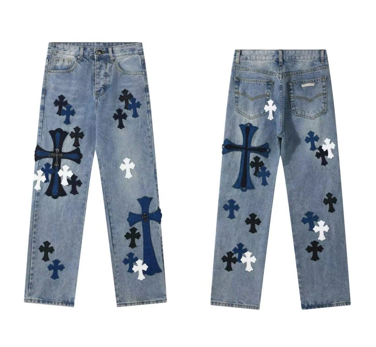 Add sophistication to your everyday look with the Chrome Hearts Cross Denim Patch Jeans. A versatile piece that transitions effortlessly from day to night. Available in multiple sizes, it offers a comfortable fit for a wide range of body types. Perfect for both casual and semi-formal occasions, this product meets diverse style needs.