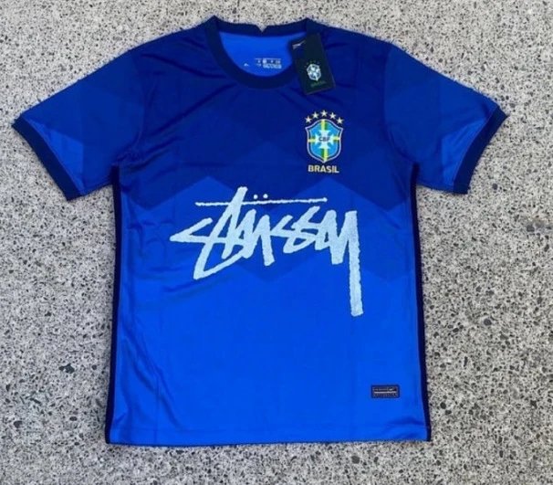 Stussy Brazil Theme Gradient Blue Short-Sleeve Jersey