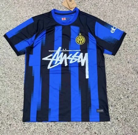 Stussy Inter Milan collaboration blue-black striped jersey