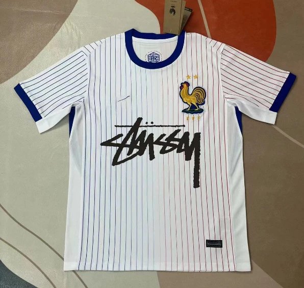 Stussy Jersey White Stripes Red & Blue Color Blocking Rooster Embroidery